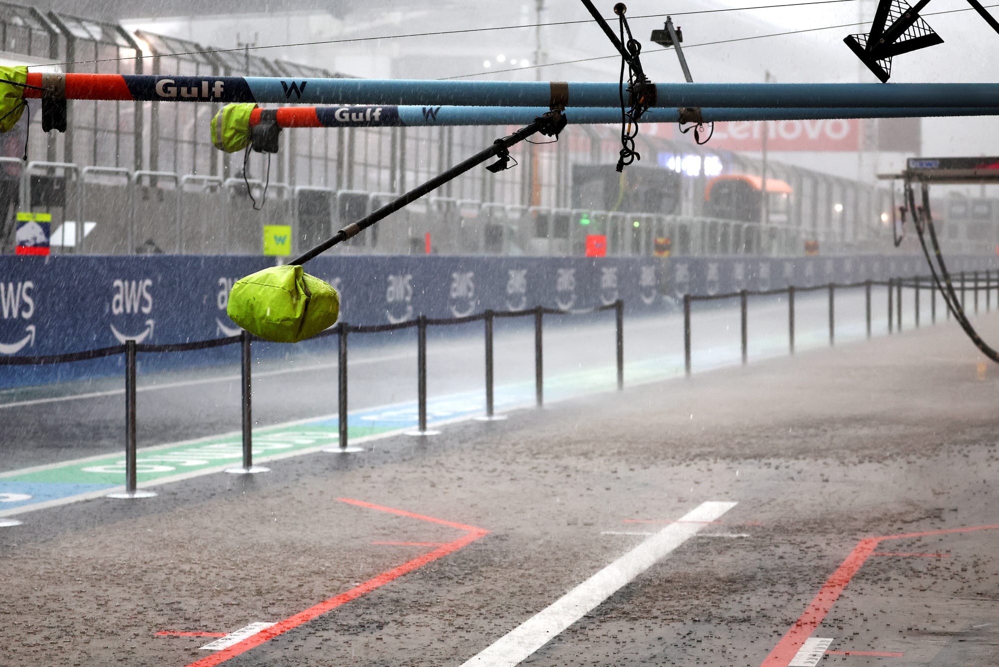 🗣️ @SMitchellF1: "It's still raining extremely hard, lots of thunder, and the storm warning likely means the medical helicopter can’t fly with lightning around.